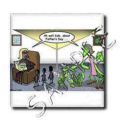 Fathers Day with a Black Widow Spider and Preying Mantis Tile is commercial quality. Constraction grade, glossy finish tiles are produced from material clays and minerals into exceptionally reliable finished products that can be used as a decorarative pieces also.
