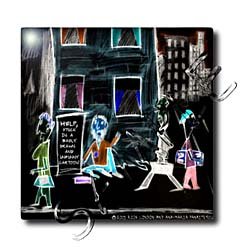 Help Stuck In A Badly Drawn And Unfunny Cartoon - 4 Inch Glass Tile Overview