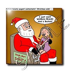 Santa and Future Beauty Pagent Contestant Tile is commercial quality. Constraction grade, glossy finish tiles are produced from material clays and minerals into exceptionally reliable finished products that can be used as a decorarative pieces also.
