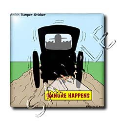 Manure Happens Tile is commercial quality. Constraction grade, glossy finish tiles are produced from material clays and minerals into exceptionally reliable finished products that can be used as a decorarative pieces also.