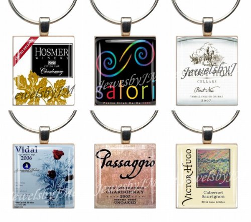 - Exciting Vintage Wine Label Wine Glass Charms/Markers ~ Set of Six (6) Different Photo Images.